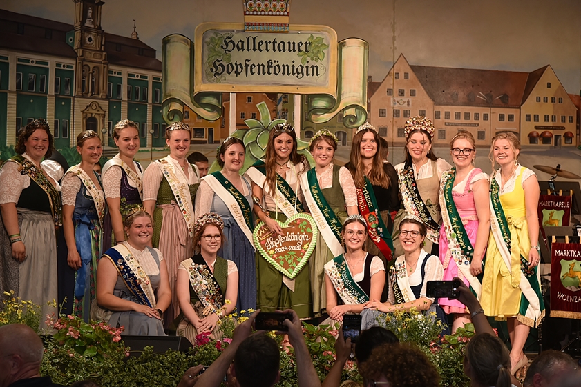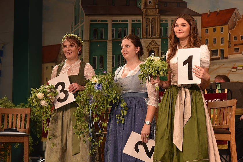 (ty) Ein neues "Dreigestirn" regiert seit dem gestrigen Abend über die Hallertau und repräsentiert nun ein Jahr lang das "Grüne Gold" der Region. Im Rahmen des Wolnzacher Volksfestes wurde bei vollem Haus in der Festhalle vom Publikum gewählt. Am Ende stand fest: Eva-Maria Pichlmeyer ist die neue Hallertauer Hopfenkönigin. Sie ist 21 Jahre alt, studiert Agrar-Marketing und Agrar-Management und kommt aus Grafendorf bei Rudelzhausen (Kreis Freising) im Hopfen-Siegelbezirk Au in Hallertau. Auch die beiden weiteren Bewerberinnen gingen an diesem Abend aber nicht ohne Titel nach Hause.