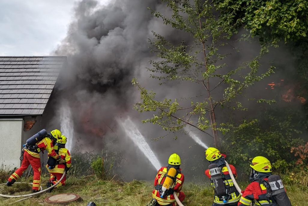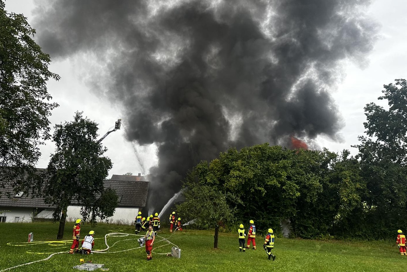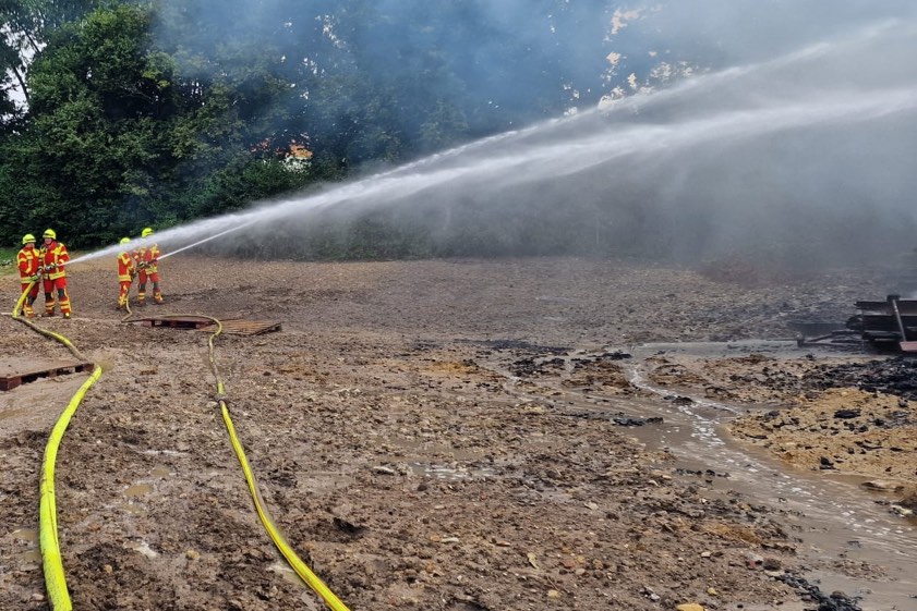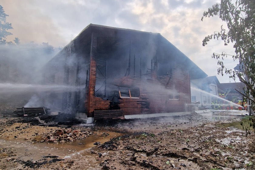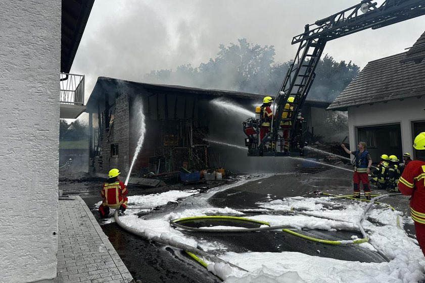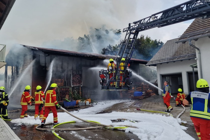 Feuer heute in Herrnwahlthann: Ursache noch unklar, Schaden im sechsstelligen Euro-Bereich, offenbar niemand verletzt, Kripo ermittelt.