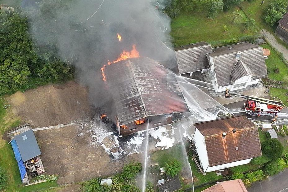 Laut Polizei hatte ein Nachbar der 56 Jahre alten Brandleiderin gegen 9.25 Uhr bei der Scheune sowohl Rauch-Entwicklung als auch Flammen-Bildung wahrgenommen und daraufhin einen Notruf abgesetzt. In der betroffenen Halle waren den Angaben zufolge landwirtschaftliche Fahrzeuge und Gerätschaften zur Holz-Bearbeitung gelagert. Die alarmierten Feuerwehrleute "konnten ein Übergreifen der Flammen auf die angrenzende Wohnbebauung weitestgehend verhindern", teilte das Polizeipräsidium von Niederbayern mit.