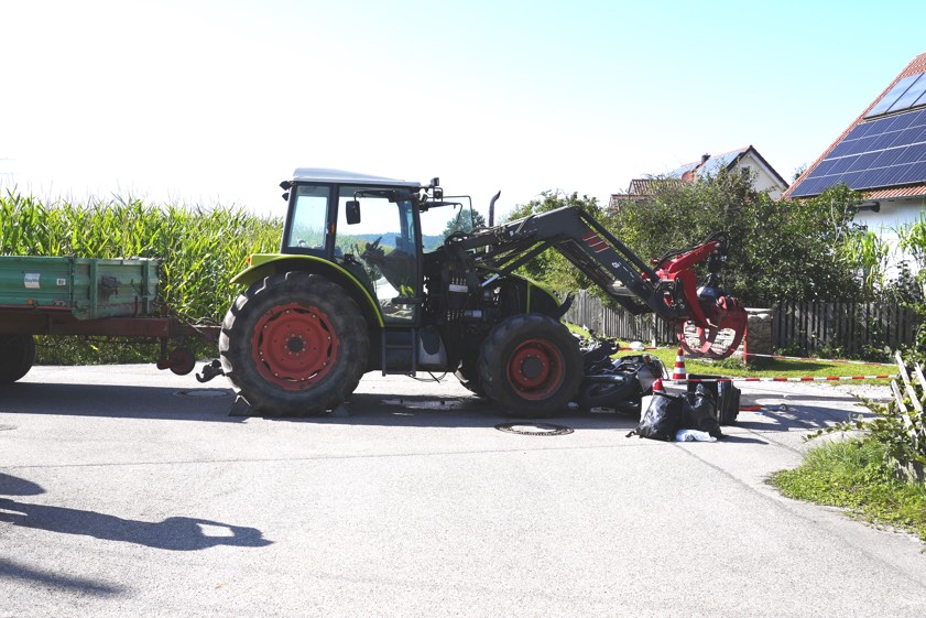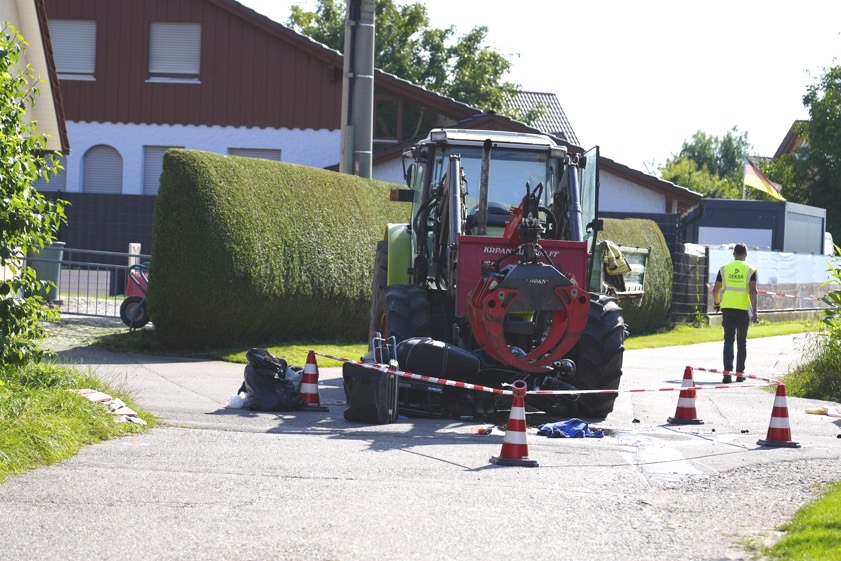 Laut Polizei war der Zweirad-Lenker auf dem Saumweg in westlicher Richtung unterwegs, während der 48-Jährige seinen Traktor auf dem Kirchweg in nordöstliche Richtung steuerte. An der Kreuzung habe der Traktor-Fahrer den von rechts kommenden und bevorrechtigten Motorrad-Fahrer übersehen, woraufhin es zur Kollision gekommen sei. Ein Gutachter wurde zur Unfallstelle gerufen. Die Feuerwehren aus Binnenbach und Aindling sperrten die Unglücksstelle bis zum Abschluss der erforderlichen Maßnahmen ab. An dem Motorrad sei ein Totalschaden entstanden, der mit 15 000 Euro beziffert werde.
