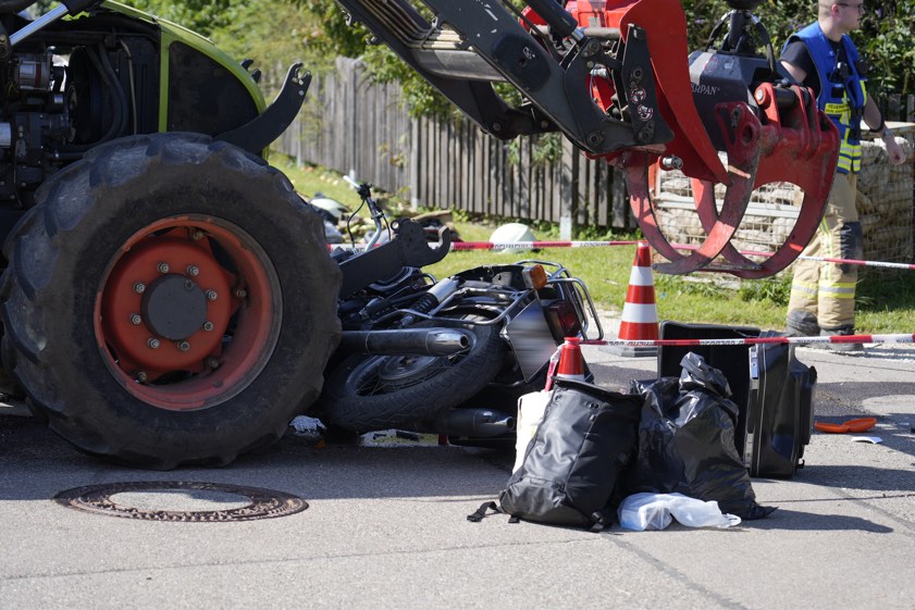 Laut Polizei wurde der Biker an einer Kreuzung in Aindling-Binnenbach von einem 48-Jährigen übersehen, der ein landwirtschaftliches Gespann steuerte.