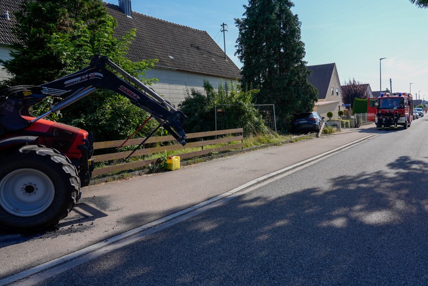 Gekracht hat es laut Polizei-Angaben gegen 15.55 Uhr. Die 53-Jährige sei mit ihrem Pkw auf der Straße "Unter Kanal" – von Weichering-Lichtenheim her kommend – in Richtung der Hauptstraße unterwegs gewesen. Vor ihr sei der 29-Jährige mit seinem Bulldog gefahren, so ein Polizei-Sprecher. Zum Überholen habe die Frau den linken Geh- und Radweg genutzt. Dabei habe die 53-Jährige das Traktor-Gespann übersehen, mit dem ein 54-Jähriger, der von einer Hof-Ausfahrt auf die Straße steuern wollte, auf dem besagten Geh- und Radweg gestanden habe.