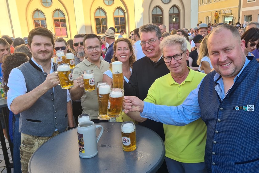 Neben Vize-Bürgermeister Roland Dörfler (Grüne) waren auch Vertreter der beiden Brauereien sowie die Festwirte und einige Stadträte gekommen. Für die musikalische Begleitung des Spektakels sorgte die Blaskapelle "Die lustigen Holledauer". Nachdem die ersten Leute mit Bier und Brezen versorgt waren, begrüßte Dörfler die Besucherinnen und Besucher. Anschließend übergab er das Wort an "Müllerbräu"-Chef Manuel Müller und an Pater Lukas Wirt vom Kloster in Scheyern, sowie an die die Festwirte Daniel Schneider, Julia Spitzenberger und Philipp Schleef. Alle blicken dem bevorstehenden Volksfest freudig entgegen, das von Freitag, 6. September, bis Dienstag, 17. September, steigt.