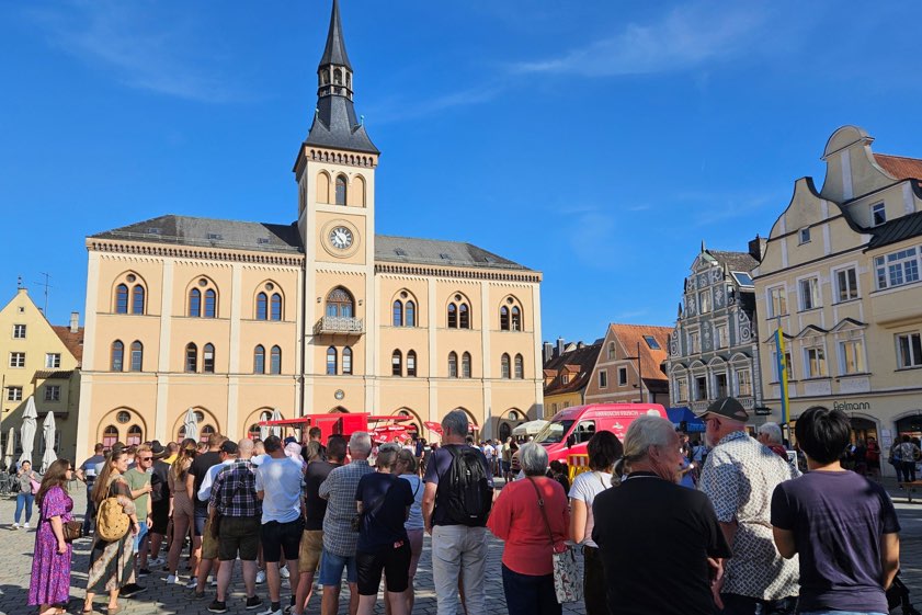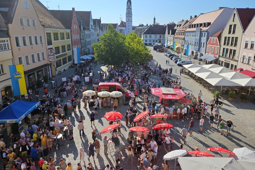 (ty) Freibier und Gratis-Brezen, dazu Musik – und das alles bei bestem Sommerwetter. Vor dem Volksfest, das am 6. September in Pfaffenhofen beginnt, hat am gestrigen Mittwoch die traditionelle Bierprobe in der Kreisstadt stattgefunden. Offizieller Start dieser kostenlosen Gaudi war um 17 Uhr; der untere Hauptplatz füllte sich schnell. Hunderte von Leuten kamen, um erstmalig das diesjährige Festbier vom "Müllerbräu" und von der Kloster-Brauerei aus Scheyern zu testen. Schon vor Ausschank-Beginn hatten sich vor den Ständen lange Schlangen gebildet.