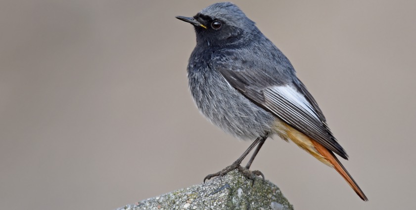 Der Hausrotschwanz (Phoenicurus ochruros) ist laut LBV ein früher Vogel – schon im ersten Morgen-Grauen ertönt sein melodischer, lautstarker Gesang. Den Winter verbringe der zierliche Singvogel traditionell in Nordafrika, bleibe aber immer öfter auch in Bayern. Als Insektenfresser sei er vom Rückgang der Insekten durch die intensive Landwirtschaft und naturferne Gärten stark betroffen. Außerdem vertrete er die Gruppe der Gebäude-Brüter, die es durch Sanierungen immer schwerer habe, Nist-Möglichkeiten in Nischen und unter Giebeln zu finden. Sein Wahl-Slogan laute daher: "Mut zur Lücke!"