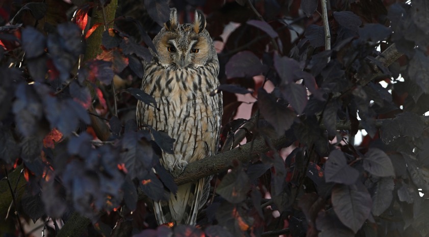 Die Waldohreule (Asio otus) ist nach LBV-Angaben nach dem Waldkauz die zweithäufigste Eule in Bayern. Optisch ähnelt sie dem Uhu, ist aber kleiner und schlanker. Ihre "Ohren" seien keine, sondern Federpuschel, die nicht zum Hören dienten. Die Waldohreule lebe in Wäldern mit offenen Flächen in der Nähe, wo sie Mäuse jage. Sie niste gern in alten Krähen-Nestern. "Im Winter ruhen mehrere Vögel an einem Gemeinschafts-Schlafplatz im dichten Geäst, oft auch im Siedlungs-Gebiet", erklärt der LBV. Wie alle Eulen könne die Waldohreule völlig geräuschlos fliegen. Bei der nächtlichen Jagd orte sie ihre Beute akustisch. Ihr Wahl-Slogan lautet: "Ohren auf: Natur an!"