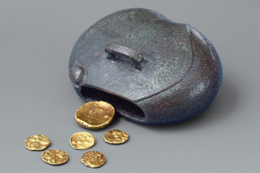 Mit dem Archäologen Markus Strathaus begeben sich die Gäste bei der Führung auf eine Zeitreise in die Keltenstadt von Manching, die zu den bedeutendsten eisenzeitlichen Siedlungen Europas zählt. Dabei lernen sie herausragende Funde wie das geheimnisvolle Kultbäumchen, den mächtigen "Murus Gallicus" oder faszinierende Grabbeigaben kennen. Wie sicherte das "Imperium Romanum" seine Grenzen an der Donau und welche Bedeutung kam dem Militär-Kastell von Oberstimm dabei zu? Was für eine Rolle spielten die beiden berühmten römischen Patrouillen-Boote? Diesen und anderen Fragen geht die Tour in der Römer-Abteilung nach. Das Foto oben zeigt eine keltische Geldbörse aus dem Oppidum von Manching. (Foto: Archäologische Staatssammlung München, Manfred Eberlein)