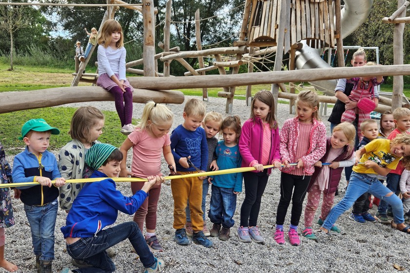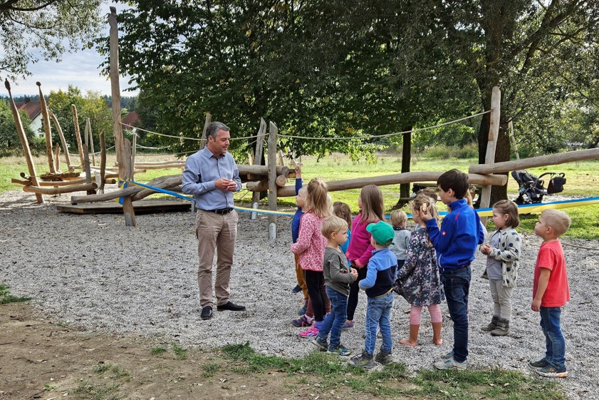 Bürgermeister Thomas Herker (SPD) bedankte sich für die tatkräftige Unterstützung bei Planung und Aufbau. In den vergangenen zehn Jahren seien bereits zirka zwei Millionen Euro in Spielplätze im Gemeinde-Bereich investiert worden. "Wir haben mittlerweile insgesamt 41 Spielplätze und es kommen immer weitere dazu", so Herker. Zwei Kinder durften gestern das symbolische Band durchschneiden und damit diesen Spielplatz offiziell freigeben. Zur Feier des Tages wurde außerdem eine "Schatzsuche" veranstaltet: Auf dem Gelände waren bunte Murmeln versteckt worden, nach denen die Buben und Mädchen eifrig suchten.