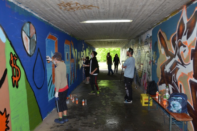 Platz, um sich auszutoben, hatten die Teilnehmer wahrlich genug. Ein Teil der beiden Unterführungen war zuvor dunkelblau gestrichen worden, damit die angehenden Sprayer freie Bahn hatten. Nicht nur hier, sondern auch in der Fußgänger-Unterführung in Niederscheyern und an der Mauer in den Hohenwarter Straße dürfen sich Graffiti-Künstler bekanntlich in der Kreisstadt ganz legal austoben. Allerdings sollte man sich in der Szene umhören, bevor man an der Hohenwarter Straße die Sprühdose zückt, sagt Matthias Stadler von der Stadtjugendpflege. Denn diese Fläche sei – ungeschriebenes Gesetz, sozusagen – doch eher den erfahreneren Künstlern vorbehalten.