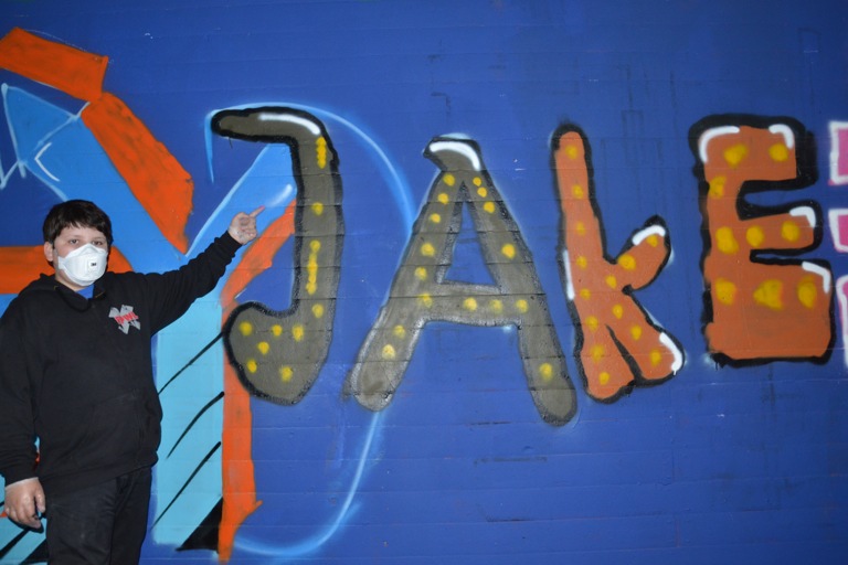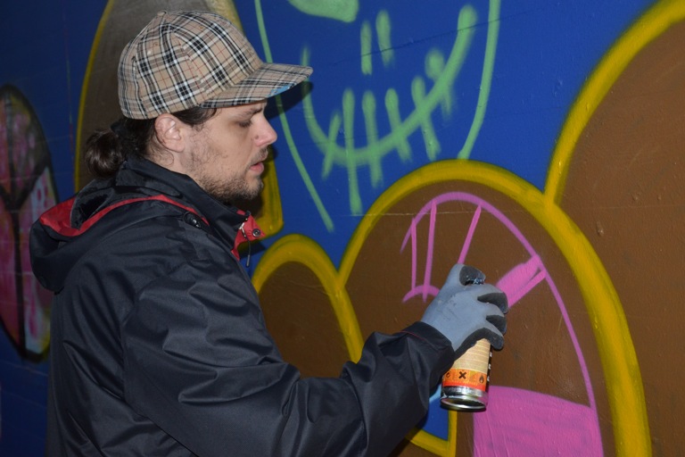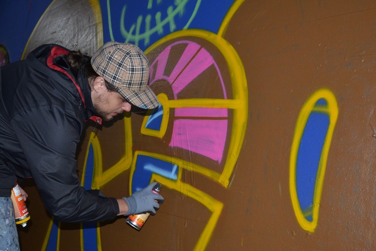 Vor gut zwei Jahren hat Andi Dill ein Atelier im Kreativquartier „Alte Kämmerei“ bezogen, ist künstlerisch sehr aktiv. Im Hauptberuf kaufmännischer Angestellter, ist das Sprayen sein „Ausgleich“, erzählt er im Gespräch mit unserer Zeitung. Seit rund zwölf Jahren frönt er der Graffiti-Leidenschaft. „Ich will das Wissen, das ich mir über die Jahre schwer erarbeitet habe, weitergeben“, sagt er. Denn Graffiti, das sei Arbeit und nicht nur Drauf-los-Sprühen. Und es sei ja auch wichtig, dass es Nachwuchs an den Spraydosen gebe. Weil irgendwann sollen die heutigen Neulinge die künftigen Anfänger unter ihre Fittiche nehmen.