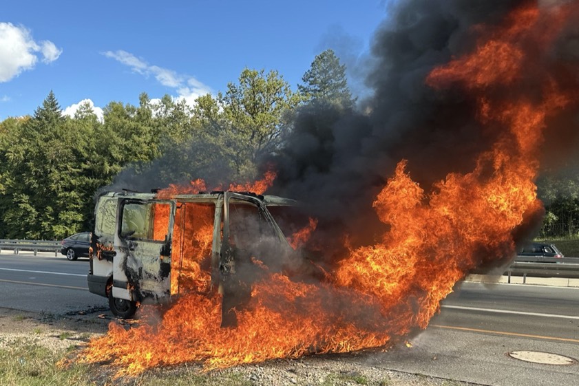 (ty) Vollständig ausgebrannt ist am gestrigen Nachmittag der Kleintransporter eines 35-Jährigen auf der Autobahn A93 im Gemeinde-Bereich von Bad Abbach. Das berichtet heute die Polizeiinspektion aus Mainburg. Laut Erkenntnissen der Beamten war der Wagen aufgrund eines technischen in Flammen geraten. Verletzte habe es bei dem Zwischenfall glücklicherweise nicht gegeben. An dem Kastenwagen sei ein Totalschaden entstanden, der mit zirka 2000 Euro beziffert werde. Die Autobahn in Richtung München war wegen des Feuerwehr-Einsatzes zeitweise gesperrt.