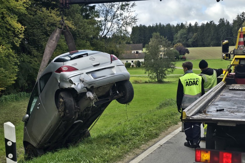 Der Unfall geschah kurz vor 9 Uhr auf der PAF6. Laut Polizei war die aus dem Kreis Neumarkt in der Oberpfalz stammende 26-Jährige mit ihrem Opel auf der Kreisstraße – von Prambach her kommend – in Richtung Niederthann unterwegs. "In der dortigen Links-Kurve kam ihr der unbekannte Fahrzeugführer entgegen, welcher mit seinem weißen Pkw auf ihre Fahrspur kam", so die Polizei. "Um einen Zusammenstoß zu verhindern, musste die Corsa-Fahrerin nach rechts ausweichen und verlor hierbei die Kontrolle über ihr Fahrzeug, weshalb sie letztlich nach rechts von der Fahrbahn abkam und sich ihr Fahrzeug überschlug." Das Auto kam etliche Meter von der Kreisstraße entfernt seitlich in einem Bachbett zum Liegen.