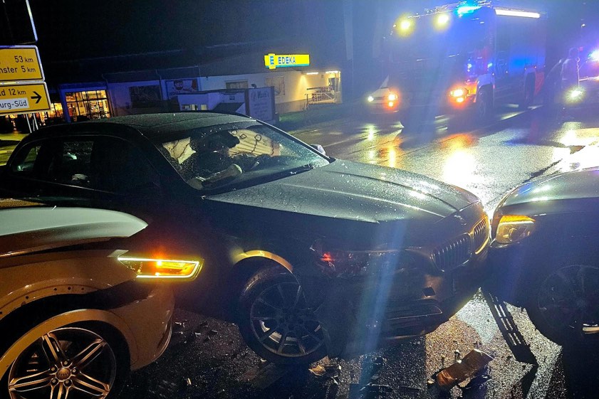 Im Einmündungs-Bereich kam es nach Angaben der Polizei daraufhin zum Zusammenstoß dieser beiden Pkw. Durch die Wucht der Kollision sei das Auto des 37-Jährigen dann noch gegen den Wagen eines 45-Jährigen aus Ingolstadt geschoben worden, der auf der Brücke stand und links abbiegen wollte. Streifenbeamte schätzten den entstandenen Sachschaden auf insgesamt 40 000 Euro. Zwei der drei in das Unfall-Geschehen verwickelten Pkw mussten abgeschleppt werden. Die örtliche Feuerwehr kümmerte sich um die Verkehrs-Absicherung und übernahm die Fahrbahn-Reinigung.