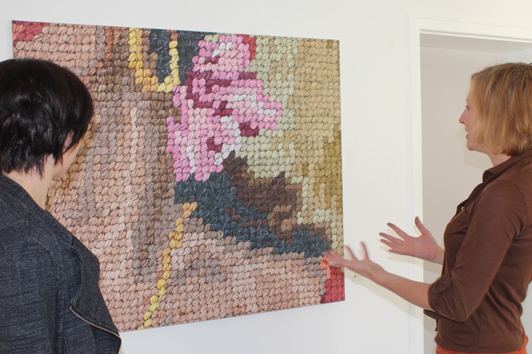 Da sind klassische Ölbilder von Annette Marketsmüller zu sehen, die durch ihre Detailtreue bestechen. Philipp Brosche malt ebenfalls in Öl und hat oben unterm Dach der eine sehenswerte Installation aufgebaut. Andreas Dill und Sebastian Schwamm haben im Treppenhaus und im Flur großformatige Wandbilder geschaffen und Sebastian Daschner arbeitet in seinen neuen Assemblagen und Objekten unter anderem mit Glas. Arlett Seidel stellt diverse Handdrucke aus und die beiden Stipendiatinnen Corinna Rausch und Sofia Seidl zeigen ebenfalls aktuelle Arbeiten.