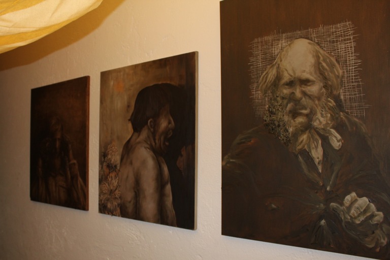Philipp Brosche zeigt seine Ölbilder in einer Installation hoch oben unterm Dach des Kreativquartiers.
