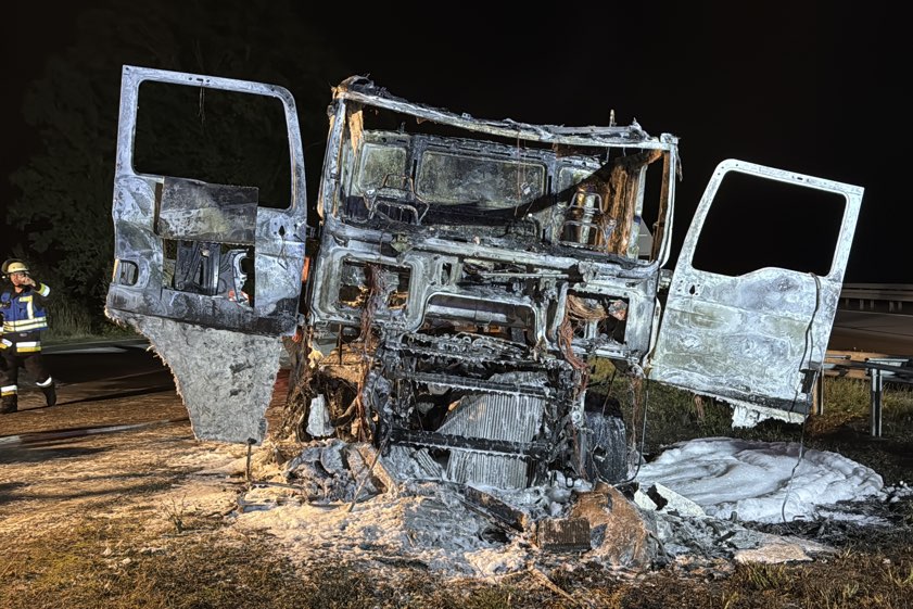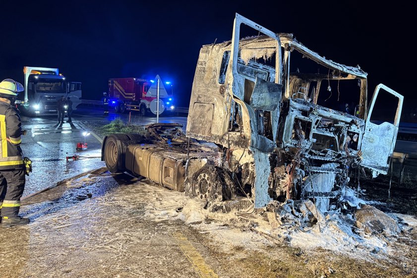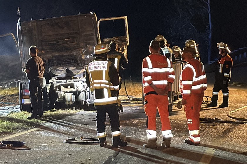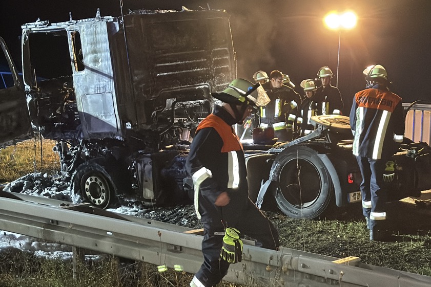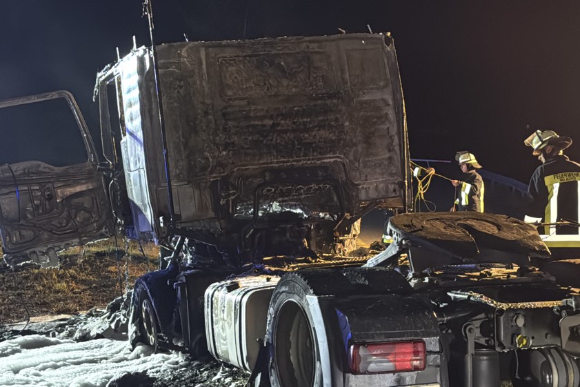 (ty) Ein Lkw ist am frühen gestrigen Abend bei Wolnzach zum Raub der Flammen geworden. Wie die Verkehrspolizei-Inspektion aus Ingolstadt heute berichtet, war ein 51-Jähriger aus München mit seinem Sattelzug auf der A93 in Richtung des Autobahn-Dreiecks Holledau unterwegs, als gegen 18.40 Uhr an der Zugmaschine ein Reifen platzte und daraufhin Feuer fing. Der Fahrer habe das Gespann kurz vor dem Dreieck noch in eine Behelfs-Ausfahrt steuern, den Anhänger abkoppeln und seine Wertsachen aus dem Führerhaus holen können.