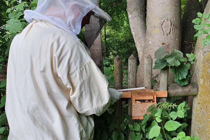 Berater Florian Göttler im Einsatz; hier bei der Umsiedlung eines Hautflügler-Nestes. Foto: Möderl