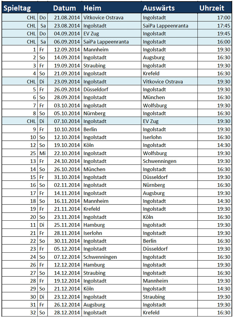Alle Spiele der DEL sowie der Champions-Hockey-League stehen auch auf www.erc-ingolstadt.de sowie als Download für den Kalender von Microsoft Outlook bereit.