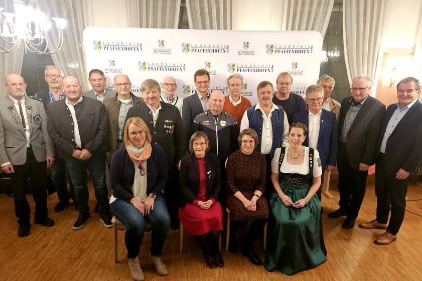 (ty) Insgesamt 18 Frauen und Männer aus dem Kreis Pfaffenhofen sind von Landrat Albert Gürtner (FW) und Florian Weiß, dem Vorsitzenden der Sportkommission des Landkreises, für ihre langjährige ehrenamtliche Tätigkeit in Sport- und Schützen-Vereinen ausgezeichnet worden. Die Ehrung fand in Langenbruck statt. Gekommen waren zu der Veranstaltungen neben den gewürdigten Personen auch deren Partnerinnen und Partner, die Bürgermeister der jeweiligen Gemeinden sowie die Vorsitzenden der Vereine und die Personen, die die jeweilige Ehrung angeregt hatten.