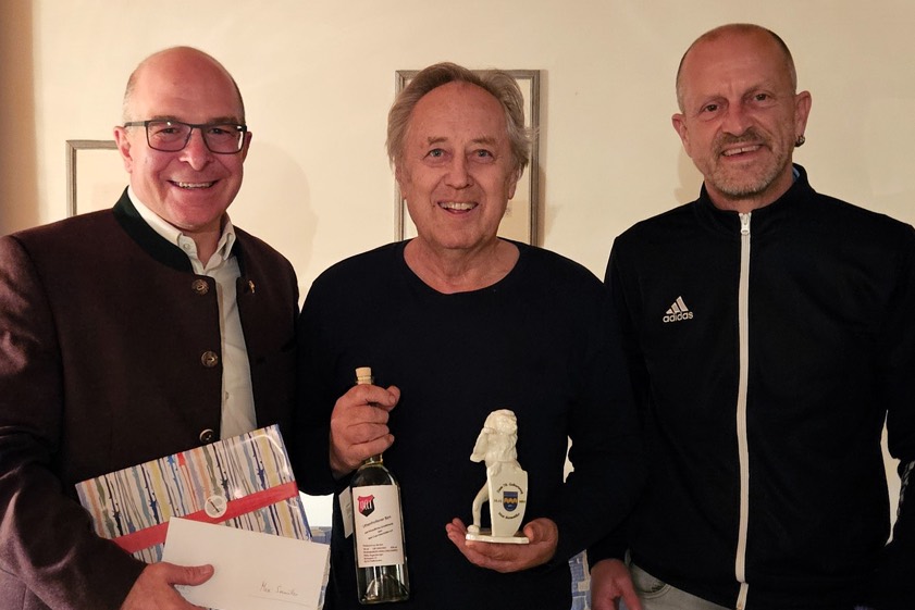 Im Jahre 1995 startete Seemüller sozusagen eine Anschluss-Karriere als Fußball-Schiedsrichter und leitete als Referee dann Spiele bis hin zur Kreisliga. Seit einiger Zeit genießt er mittlerweile seinen Ruhestand. Zu seinem runden Geburtstag gratulierten ihm neben Familien-Mitgliedern und Freunden auch etliche frühere Weggefährten. Wolfgang Inderwies (Foto, links) überbrachte als Ehrenvorsitzender des BC Uttenhofen die besten Wünsche und Michael Seidl (rechts) gratulierte als Obmann der Fußball-Schiedsrichter-Gruppe von Pfaffenhofen.