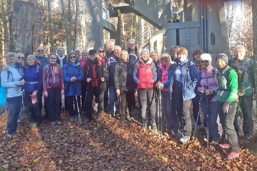 (ty) Zahlreiche Mitglieder der Sektion Pfaffenhofen-Asch des deutschen Alpen-Vereins (DAV) haben wieder einen Ausflug unternommen (Foto oben). Diesmal ging es in den Ebersberger Forst. Die Teilnehmerinnen und Teilnehmer hatten einen sonnigen Tag ohne Nebel erwischt, um in diesem landschaftlich reizvollen Naturschutz-Gebiet im Voralpenland unterwegs zu sein. "Der Egglburger See mit der imposanten Eichen-Allee und der Aussichtsturm auf der Ludwigshöhe mit herrlicher Panorama-Aussicht auf die Alpen waren die Höhepunkte dieser 18 Kilometer langen Tour", berichtet Wander-Leiter Jakob Kraft, der als Organisator fungierte. Wer mehr über die hiesige DAV-Sektion erfahren möchte, kann sich online unter www.dav-pfaffenhofen.de informieren.