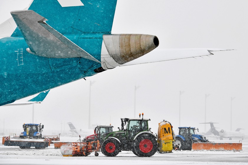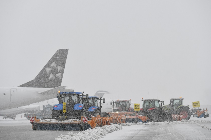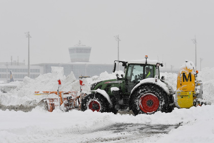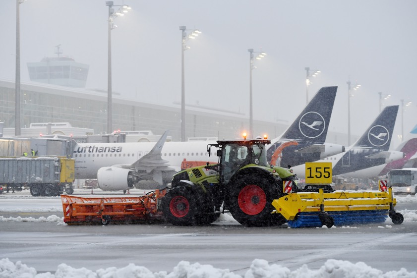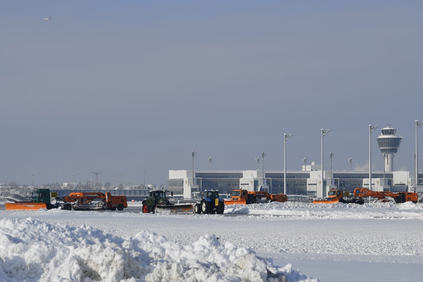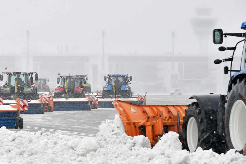Zum Einsatz kommen den Angaben zufolge zahlreiche Spezial-Fahrzeuge, darunter 22 Kehr-Blas-Geräte, fünf Verlade-Fräsen und eine Pisten-Raupe. Zusätzlich habe man neue Fahrzeuge angeschafft und Bestands-Fahrzeuge zum Beispiel mit Pflügen mit größerer Räum-Breite aufgerüstet. Neben flughafeneigenen Geräten seien die Traktoren der unterstützenden Landwirte mit Schnee-Pflügen ausgestattet.