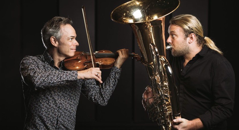 Samstag, 11. Januar: "Schmid/Hofmeir-HochTief-GmbH: Stradihumpa". Dieses Duo (Foto oben) besteht aus zwei der schillerndsten Vertreter ihrer Zünfte: Andreas Martin Hofmeir an der Tuba und Benjamin Schmid an der Violine. So unterschiedlich die Instrumente, so ähnlich sind doch die beiden Lebensläufe. Beide sind "Echo Klassik"-Preisträger, beide sind Professoren am renommierten Salzburger "Mozarteum" und beide sind sowohl in der Klassik als auch im Jazz und Pop zu Hause. "Stradihumpa", so heißt ihr erstes gemeinsames Programm – ein Wortspiel aus "Stradivari" und "Humptata"-Musik.