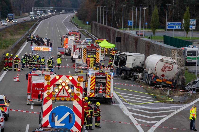 Das Unglück geschah gegen 12.35 Uhr auf Höhe des Parkplatzes "Baarer Weiher". Laut Polizei war der 63-Jährige mit dem Gefahrgut-Sattelzug auf der A9 in Richtung Süden unterwegs und hatte Benzin geladen. Aus bislang nicht bekannter Ursache sei das Gespann nach rechts von der Strecke geraten und frontal gegen die aus Gabionen bestehende Schallschutz-Wand geprallt. Der Lkw-Fahrer sei durch diese Kollision schwer verletzt worden. Nach der Erstversorgung vor Ort wurde er zur weiteren Behandlung in ein Krankenhaus gebracht. Ein Rettungshubschrauber landete an der Unglücksstelle.