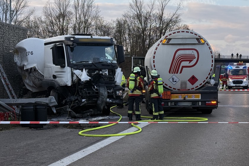 (ty) Nach dem schweren Tanklaster-Unfall, der sich – wie bereits berichtet – am gestrigen Dienstag im Landkreis Pfaffenhofen auf der A9 in Richtung Süden ereignet hat, wurden von der Polizei heute weitere Details bekanntgegeben. Ein 63 Jahre alter Münchner krachte mit dem Gefahrgut-Sattelzug frontal in eine Lärmschutz-Wand und trug schwere Verletzungen davon. Der Sachschaden wurde mittlerweile auf insgesamt 270 000 Euro geschätzt. Die Autobahn in Richtung München war über Stunden voll gesperrt. Heute musste zudem noch Erdreich ausgebaggert und entsorgt werden.