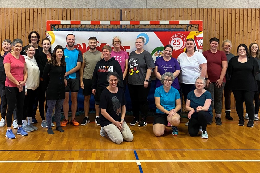 (ty) Insgesamt 19 Erzieherinnen und Erzieher haben in der Grundschul-Turnhalle in Scheyern die Fortbildung zur "Knaxiade" im kommenden Jahr absolviert (Foto oben). Übungs-Leiterin Manuela Pfahler und die Verantwortlichen bei der Sparkasse von Pfaffenhofen freuten sich über das große Interesse der Kinder-Betreuungs-Einrichtungen aus der Region an diesem Programm. Die Veranstaltung stand diesmal unter dem Motto "Fetzig. Einfach. Motivierend". Ziel sei es dabei, "Materialien mit Aufforderungs-Charakter" einzusetzen.