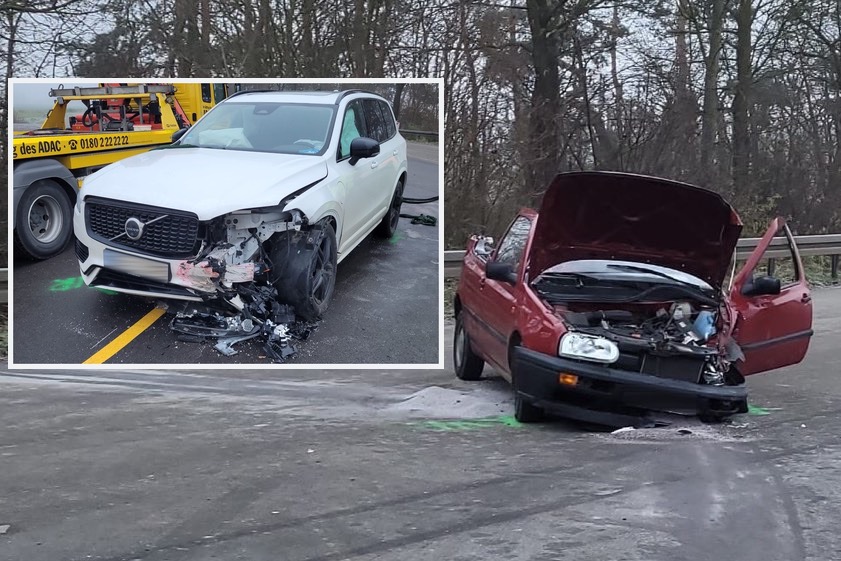 51-Jähriger geriet gestern mit seinem Volvo auf die Gegenspur und kollidierte mit dem VW einer 34-Jährigen. Bundesstraße voll gesperrt. Rettungswagen verunglückt auf Einsatzfahrt.