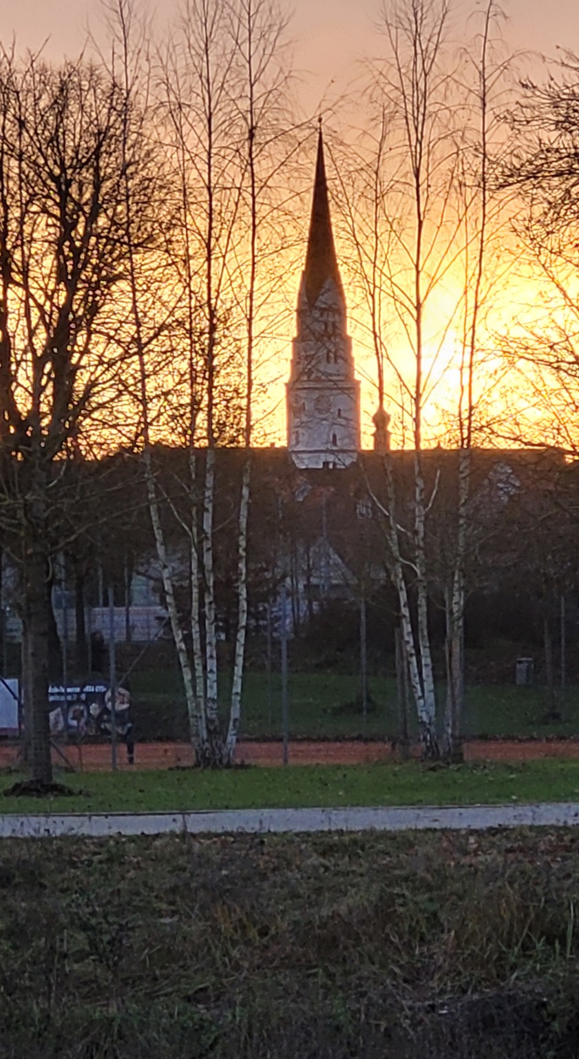 (ty) Und weiter geht sie, die Serie von beeindruckenden Fotos aus der Region, die uns unsere Leserinnen und Leser nach wie vor übermitteln. Das Motiv, das wir Ihnen am heutigen Samstag zeigen können, hat uns Klara Höfer aus der Kreisstadt zukommen lassen. Entstanden ist die Aufnahme ihren Worten zufolge am gestrigen Freitag auf dem Heimweg vom Einkaufen. Zwischen den Bäumen ragt die Pfaffenhofener Stadtpfarrkirche "St. Johannes Baptist" in den glänzenden Himmel. Oben sehen Sie einen Ausschnitt, unten das komplette Hochformat-Motiv.