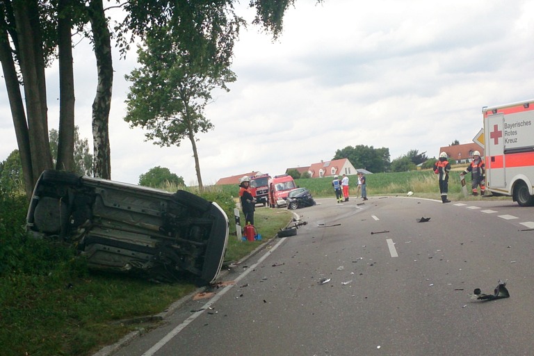 Gegen 13.40 Uhr wurden die Einsatzkräfte zu dem Unfall auf der Staatsstraße 2084 gerufen. Nach Erkenntnissen der Feuerwehr hat sich der Unfall wie folgt zugetragen: Aus unbekannter Ursache kam ein von Ilmmünster kommender Pkw ins Schleudern und geriet auf die Gegenfahrbahn; dort stieß er mit dem entgegenkommenden Fahrzeug frontal zusammen. Dieses überschlug sich nach dem Aufprall im rechten Seitengraben. Durch den heftigen Zusammenstoß beider Fahrzeuge wurde auch das zweite Auto stark beschädigt und kam in einiger Entfernung zum Unfallort zum Stehen. “Beide Fahrer wurden leicht verletzt, konnten jedoch ihre Fahrzeuge selbst verlassen“, berichtet ein Sprecher der Feuerwehr.