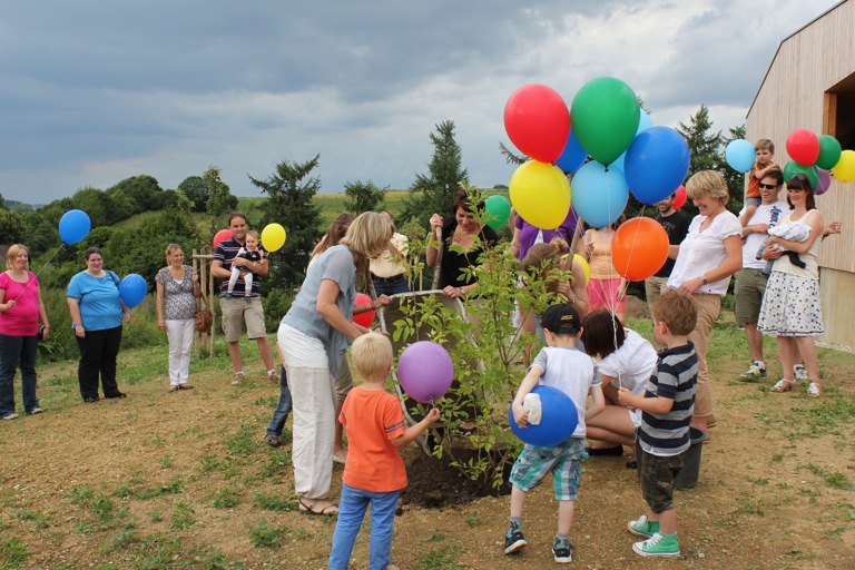 Zum Abschluss der Feier ließen die Gäste Luftballons mit guten Wünschen in den Himmel steigen, nachdem Kindergartenleiterin Helga Klöckner und ihr Team symbolisch einen Holunderstrauch gepflanzt hatten.