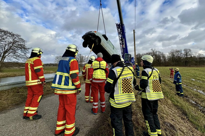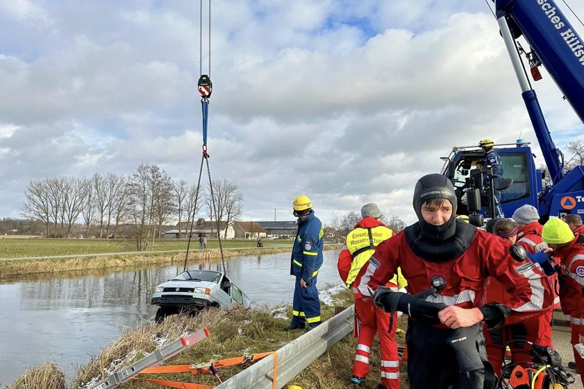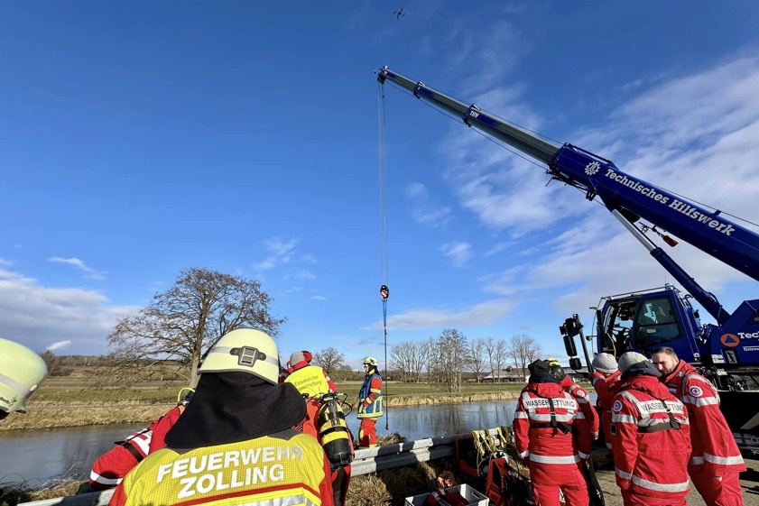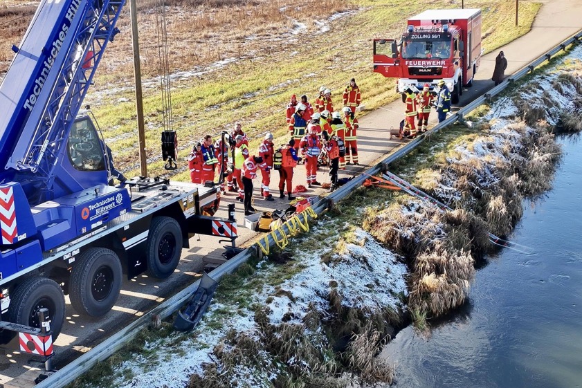 "Taucher der Wasserwacht brachten Anschlagmittel am versunkenen Fahrzeug an, im Anschluss daran konnte es durch den Kran geborgen und ans Ufer gehoben werden", berichtet die Kreisbrandinspektion. Neben den Feuerwehren aus Zolling, Haag, Anglberg, Tüntenhausen und der Kreisbrandinspektion waren die Wasserwachten aus Freising, Eching, Neufahrn bei Freising und Kranzberg sowie das THW aus Freising, der Rettungsdienst und die Polizei vor Ort. Nach Angaben der Kreisbrandinspektion war der ungewöhnliche Einsatz nach rund drei Stunden beendet.