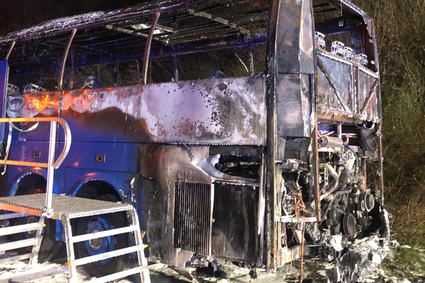 Der Fahrer stoppte bei Neuherberg wegen einer Rauch-Entwicklung; er und alle 52 Passagiere konnten sich in Sicherheit bringen. Hunderttausende Euro Schaden.