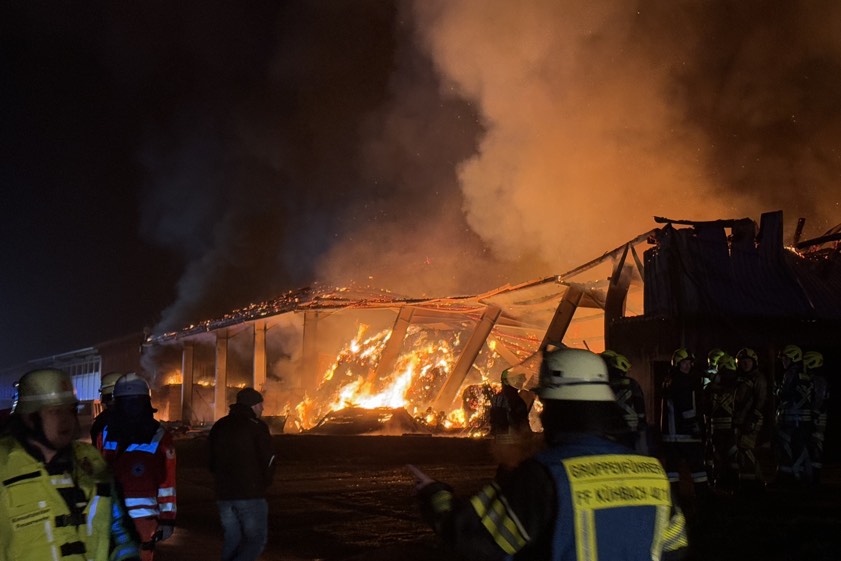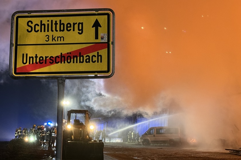 (ty) Ein großes Feuer hat am gestrigen Abend im Gemeinde-Gebiet von Kühbach (Landkreis Aichach-Friedberg) gewütet. Im Ortsteil Unterschönbach ist aus bislang nicht bekannter Ursache eine Maschinenhalle in Brand geraten und zum Raub der Flammen geworden. Wie das Polizeipräsidium Schwaben-Nord am heutigen Nachmittag mitgeteilt hat, wurde zum Glück niemand verletzt. Nach den derzeit vorliegenden Erkenntnissen sei durch die Feuersbrunst ein Sachschaden in Millionenhöhe entstanden.