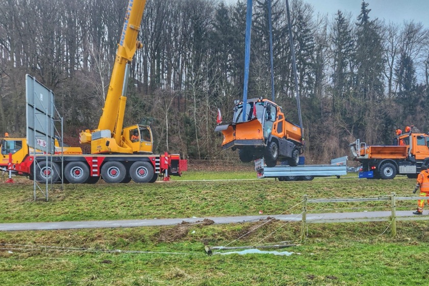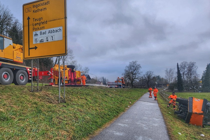 Der Unfall geschah zwischen Bad Abbach und dem Ortsteil Lengfeld auf einem Radweg neben beziehungsweise unterhalb der Bundesstraße B16. Zur Schwere der Verletzungen, die der im Landkreis Kelheim wohnende Fahrer erlitten hat, machte die Polizei keine näheren Angaben. Der entstandene Sachschaden wurde von Streifenbeamten im mittleren fünfstelligen Euro-Bereich angesiedelt. Die Bergungs-Arbeiten erfolgten am Nachmittag mit Unterstützung eines Krans. Die B16 war für etwa eine Stunde in beide Richtungen teils komplett gesperrt, so die Feuerwehr aus Bad Abbach.