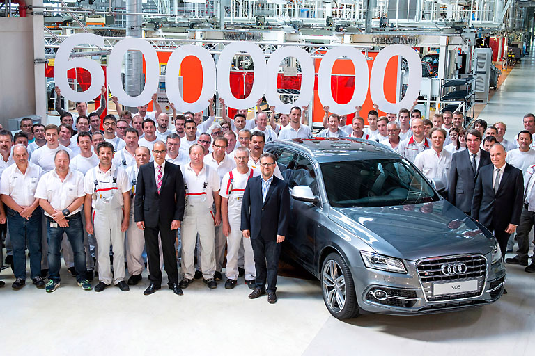 (ty) Keine Automarke ist so sehr mit dem Allradantrieb verbunden wie Audi. Seit dem Ur-quattro, dem ersten Audi mit permanentem Allradantrieb aus dem Jahr 1980, hat diese Technologie weltweit die Straßen erobert. Und gestern lief in Ingolstadt der sechs Millionste Allradler vom Band. Ein SQ5 3.0 TDI quattro in Monsungrau Metallic, der an eine Familie in den USA geht.