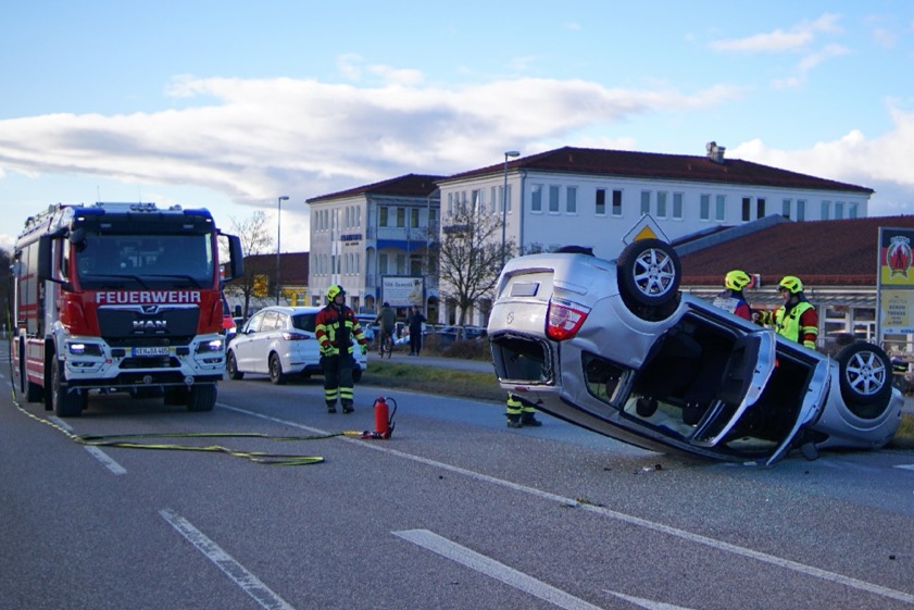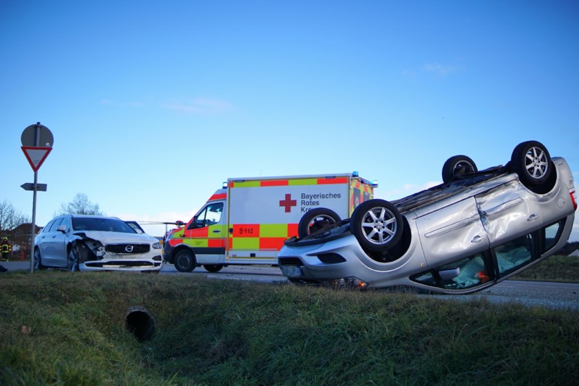 34 Jahre alte Autofahrerin übersah den Pkw einer 70-Jährigen. Der Wagen der Seniorin überschlug sich und kam auf dem Dach zum Liegen.