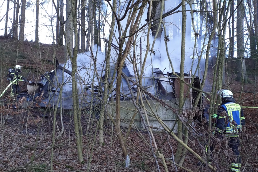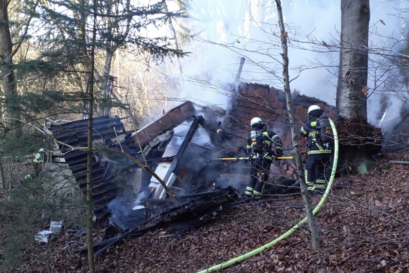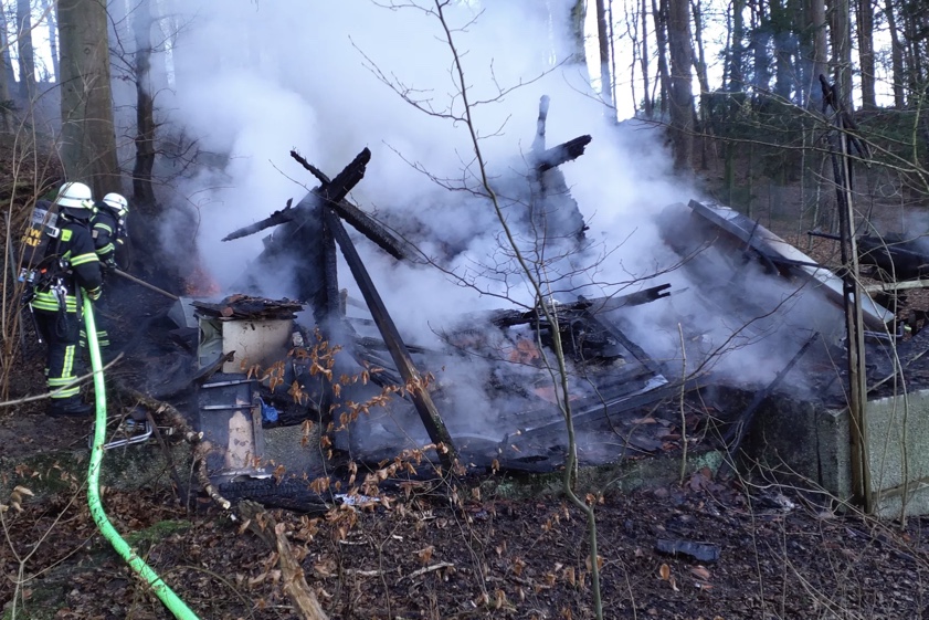 "Die Waldhütte brannte komplett ab", so ein Polizei-Sprecher. Verletzt worden sei zum Glück niemand. Der entstandene Sachschaden wurde von Streifenbeamten nach ersten Einschätzungen in einer Größenordnung von 5000 Euro angesiedelt. Die Feuerwehr aus der Kreisstadt rückte nach eigenem Bekunden mit vier Fahrzeugen und gut 20 Leuten an, war für knapp zwei Stunden im Einsatz. Als die Floriansjünger vor Ort eingetroffenen seien, habe die Hütte bereits im Vollbrand gestanden. Von zwei Trupps, die unter Atemschutz agierten, seien die Flammen schnell unter Kontrolle gebracht und schließlich gelöscht worden.