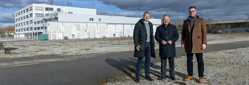 (ty) Mit der notariellen Beurkundung im Dezember vergangenen Jahres hat die Stadt Ingolstadt nach eigenem Bekunden das ehemalige Rosner-Areal im Nordosten der Stadt von der Audi-AG erworben. "Insgesamt stehen auf dem Grundstück zwischen Römer- und Schölnhammerstraße nun rund 28 600 Quadratmeter für die weitere Schul-Entwicklung zur Verfügung", wurde heute aus dem Rathaus erklärt. Oberbürgermeister Christian Scharpf, Bau-Referent Gero Hoffmann und Bildungs-Referent Marc Grandmontagne haben sich bei einem Ortstermin ein Bild von dem Areal gemacht (Foto unten). Das noch bestehende Industrie-Gebäude wird laut Stadtverwaltung abgerissen, bevor das Grundstück bis Ende dieses Jahres an die Stadt übergeben wird.
