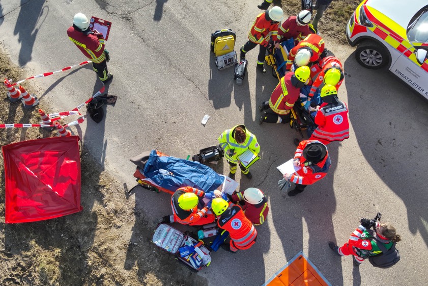"Verätzungen durch Gefahrstoffe und Pfählungs-Verletzungen sind keine alltäglichen Notfallbilder", betont der BRK-Kreisverband. "Im Fokus standen vor allem die Auszubildenden zum Notfall-Sanitäter, die eigenverantwortlich ihre Patienten betreuten. Für sie war dies eine wertvolle Gelegenheit, ihre Fähigkeiten unter realistischen Bedingungen zu testen." Begleitet worden seien die Teams um die drei Auszubildenden dabei extra von jeweils einem erfahrenen Praxis-Anleiter.