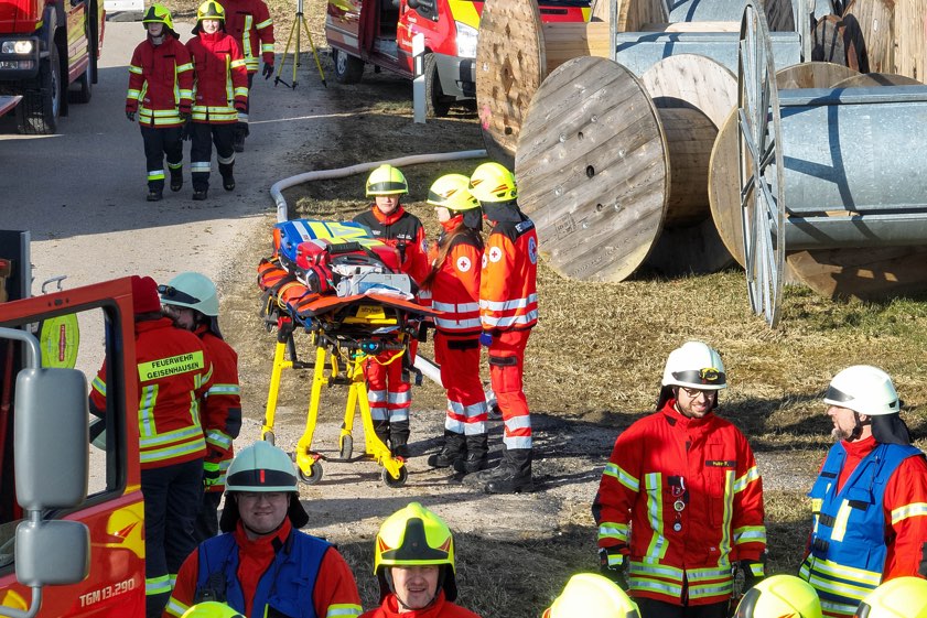 Im Einsatz waren drei Rettungswagen, ein Rettungsdienst-Einsatzleiter sowie knapp 20 Rettungsdienst-Akteure. Die Feuerwehren war mit insgesamt acht Fahrzeugen und etwa 70 Floriansjüngern vor Ort. "Auch die Kommunikation zwischen den Organisationen wurde realitätsnah geübt", erklärt der BRK-Kreisverband: "Über eine eigens eingerichtete Übungs-Leitstelle konnte die Koordination der Einsatzkräfte wie in einem echten Notfall abgebildet werden."