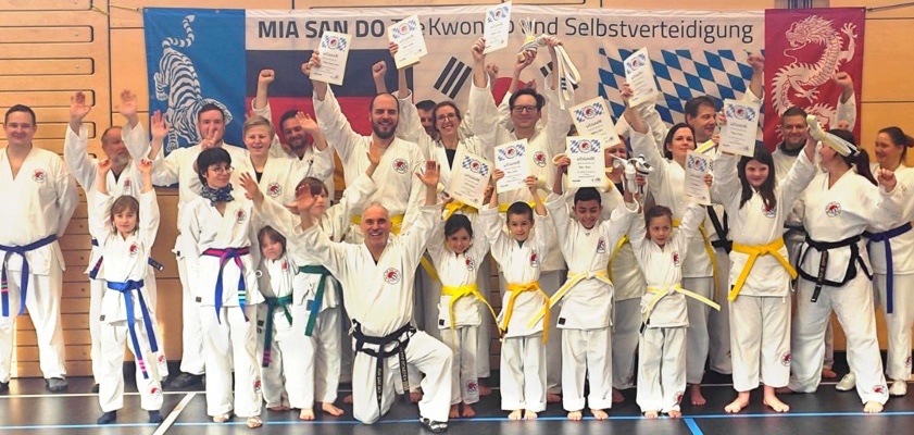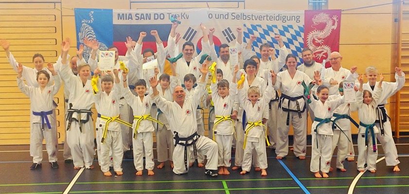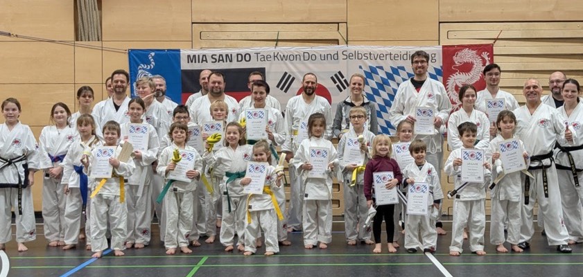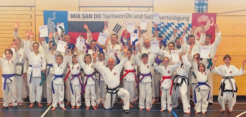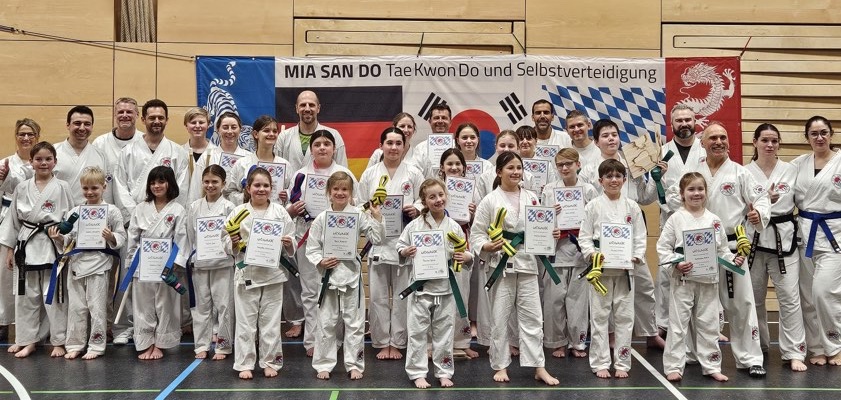 (ty) Zahlreiche Gürtel-Prüfungen hat es dieser Tage bei der Taekwondo-Abteilung der SpVgg Steinkirchen gegeben. Insgesamt 87 Akteure im Alter zwischen vier und 64 Jahren (Fotos) zeigten dabei in verschiedenen Leistungs-Stufen ihr Können und stellten die erworbenen Fähigkeiten unter Beweis. "Gürtel-Prüfungen sind immer eine besondere Herausforderung für Körper und Geist", weiß Großmeister Klaus Scheuer. "Sie sind übrigens nicht nur anstrengend für die Prüflinge, sondern auch für die zahlreichen Prüfungshelfer."