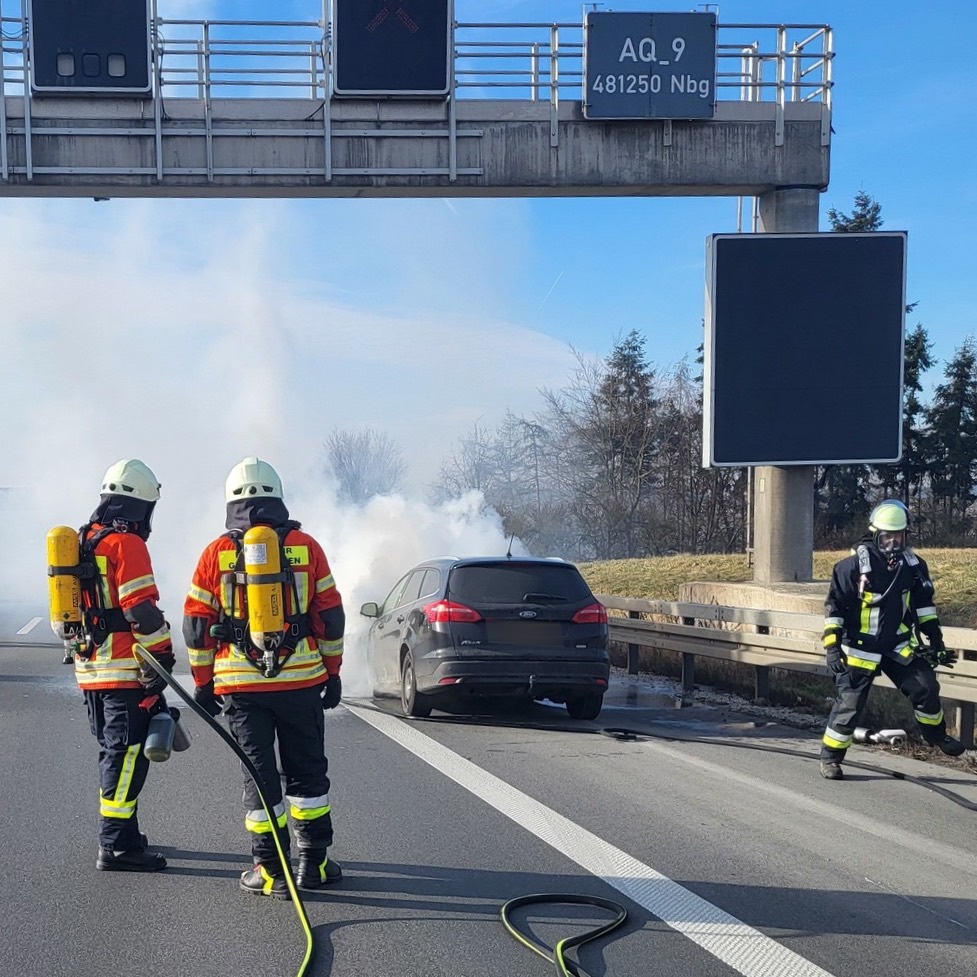 (ty) Ein Pkw-Brand im Bereich von Wolnzach hat am gestrigen Freitag für massive Verkehrs-Behinderungen auf der A9 in Richtung Nürnberg gesorgt. Laut heutiger Mitteilung der Polizei war ein 23 Jahre alter Niederländer mit seinem Ford auf der Autobahn in Richtung Norden unterwegs, als er gegen 14.45 Uhr kurz nach dem Autobahn-Dreieck Holledau zunächst einen lauten Knall vernommen habe. Der Wagen habe anschließend im Motorraum Feuer gefangen. Der junge Mann habe den Wagen am Seitenstreifen abstellen können; die beiden Pkw-Insassen seien unverletzt davongekommen.