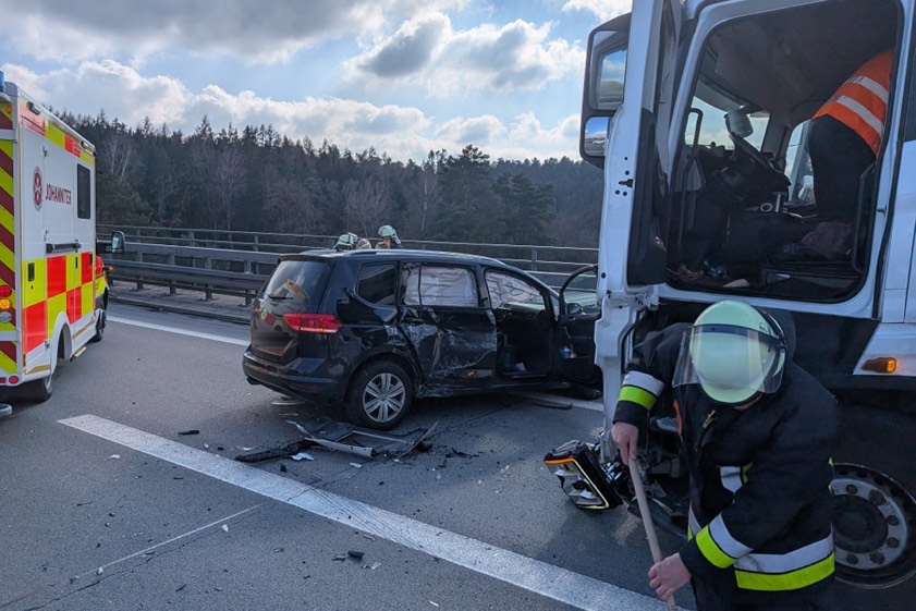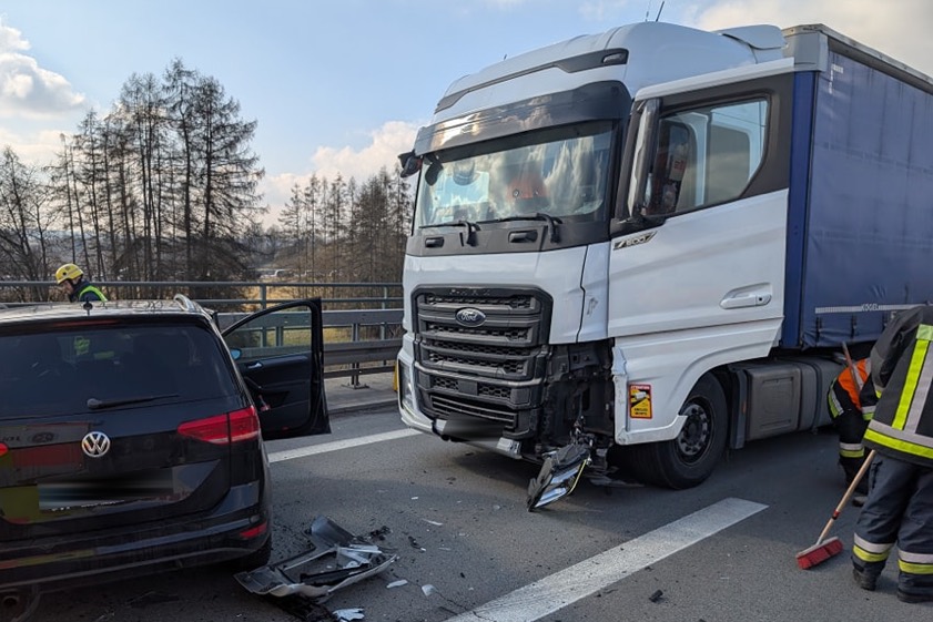 Zwei Pkw und ein Lkw waren in diesen Unfall verwickelt, der gestern Nachmittag massive Behinderungen in Richtung Süden zur Folge hatte.