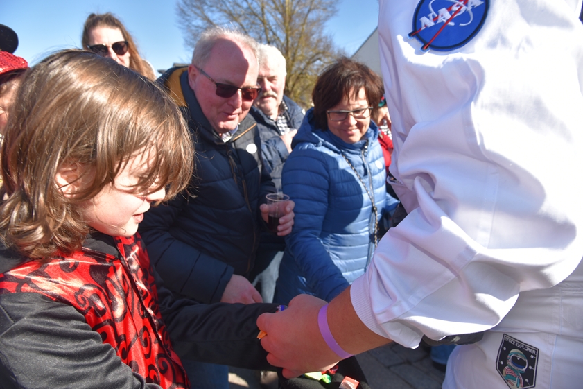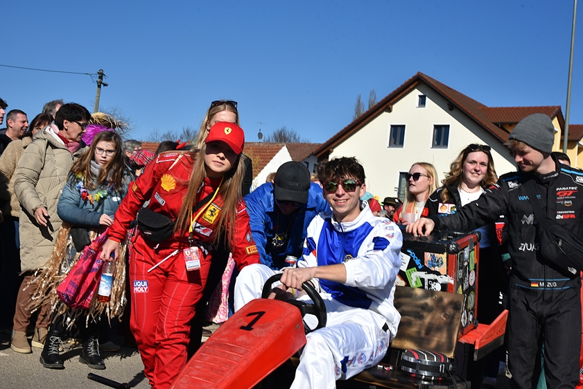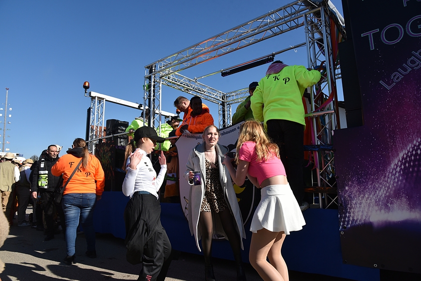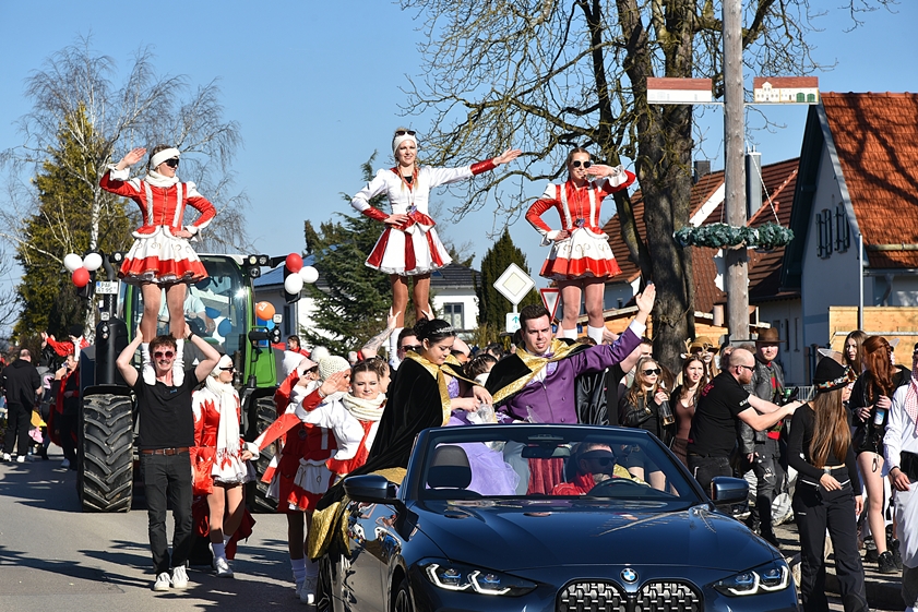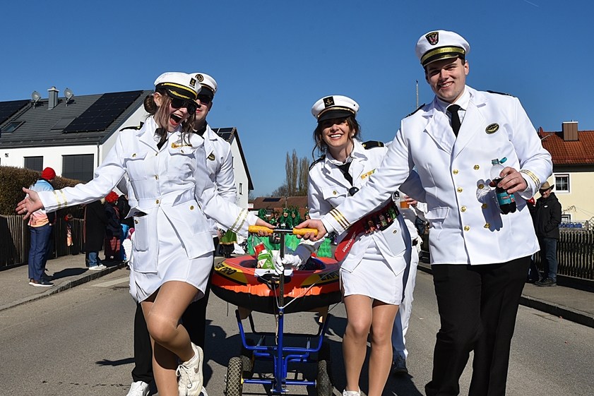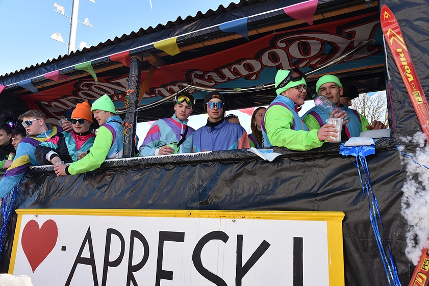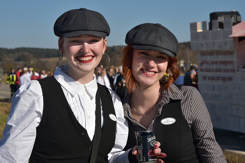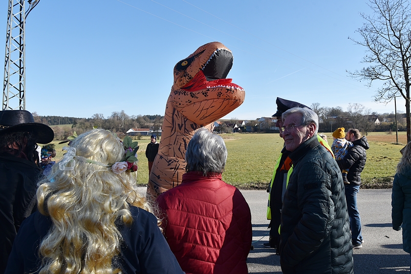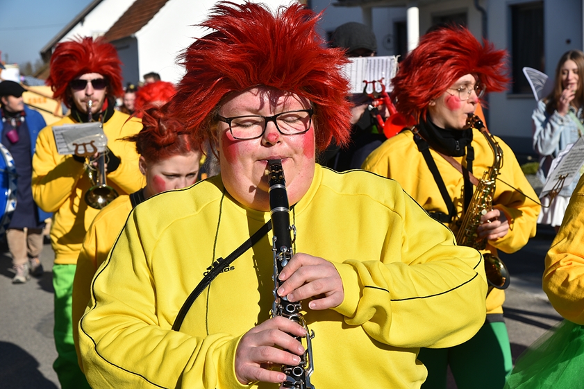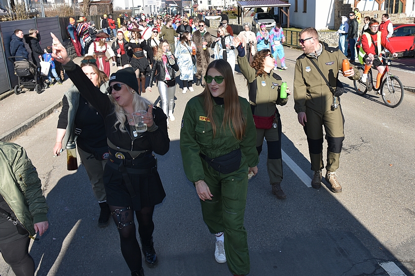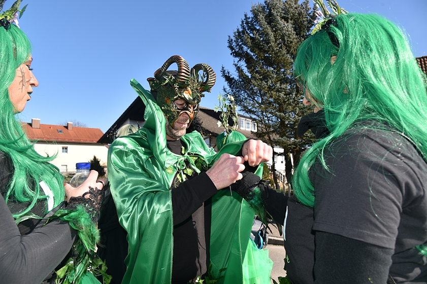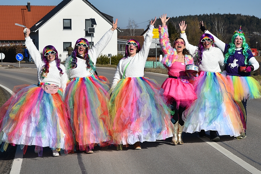 Zahlreiche Zuschauer verfolgten das närrische Spektakel, an dem etliche Wagen und viele Fußgruppen beteiligt waren. Der Tag klingt mit einer Party aus.