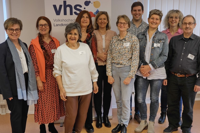 (ty) Rund 60 Kurs-Leiterinnen und Kurs-Leiter, die für die Volkshochschule des Landkreises Pfaffenhofen (VHS) tätig sind, sind einer Einladung gefolgt, um sich in den VHS-Räumen in Pfaffenhofen zu informieren und auszutauschen. Außerdem gab es Ehrungen für langjähriges Engagement (Foto oben). Alice Köstler-Hösl, die Chefin der Landkreis-VHS, hob die zentrale Rolle der Bildungs-Einrichtung als Ort der Begegnung und des gemeinsamen Lernens hervor: "An unserer VHS kommen Menschen jeder Herkunft, jeden Alters, jeder Religion und Weltanschauung und verschiedener Vorbildung zusammen, um Wissen und Fähigkeiten zu erwerben, ins Gespräch zu kommen und zu diskutieren."