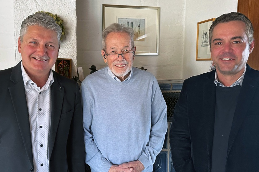 (ty) Sepp Hobmeier, von 1984 bis 1990 der Erste Bürgermeister von Pfaffenhofen, hat am gestrigen Montag seinen 90. Geburtstag gefeiert. Der aktuelle Rathaus-Chef Thomas Herker und der derzeitige Dritte Bürgermeister Peter Heinzlmair machten ihm die Aufwartung und überbrachten ihm dabei auch die besten Glückwünsche im Namen der Kreisstadt. Der Jubilar habe sich sichtlich über den Besuch gefreut, heißt es aus dem Rathaus. "Bei Kaffee und Kanapees unterhielten sie sich über aktuelle Belange der Stadt, wie es ihm geht und wie er und seine Frau Christina das letzte Jahr verbracht haben."